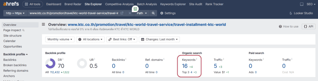ในตัวอย่างจะใช้ Tool ชื่อ Ahrefs ในการดู