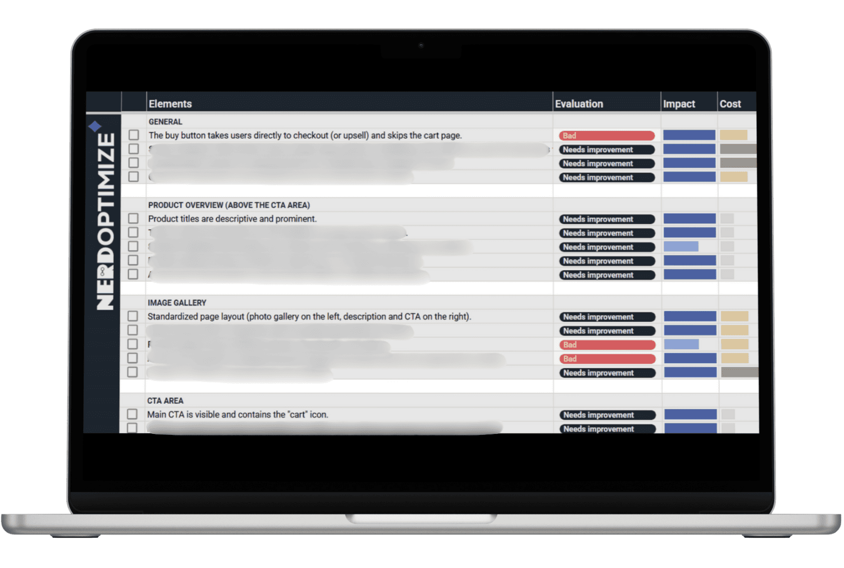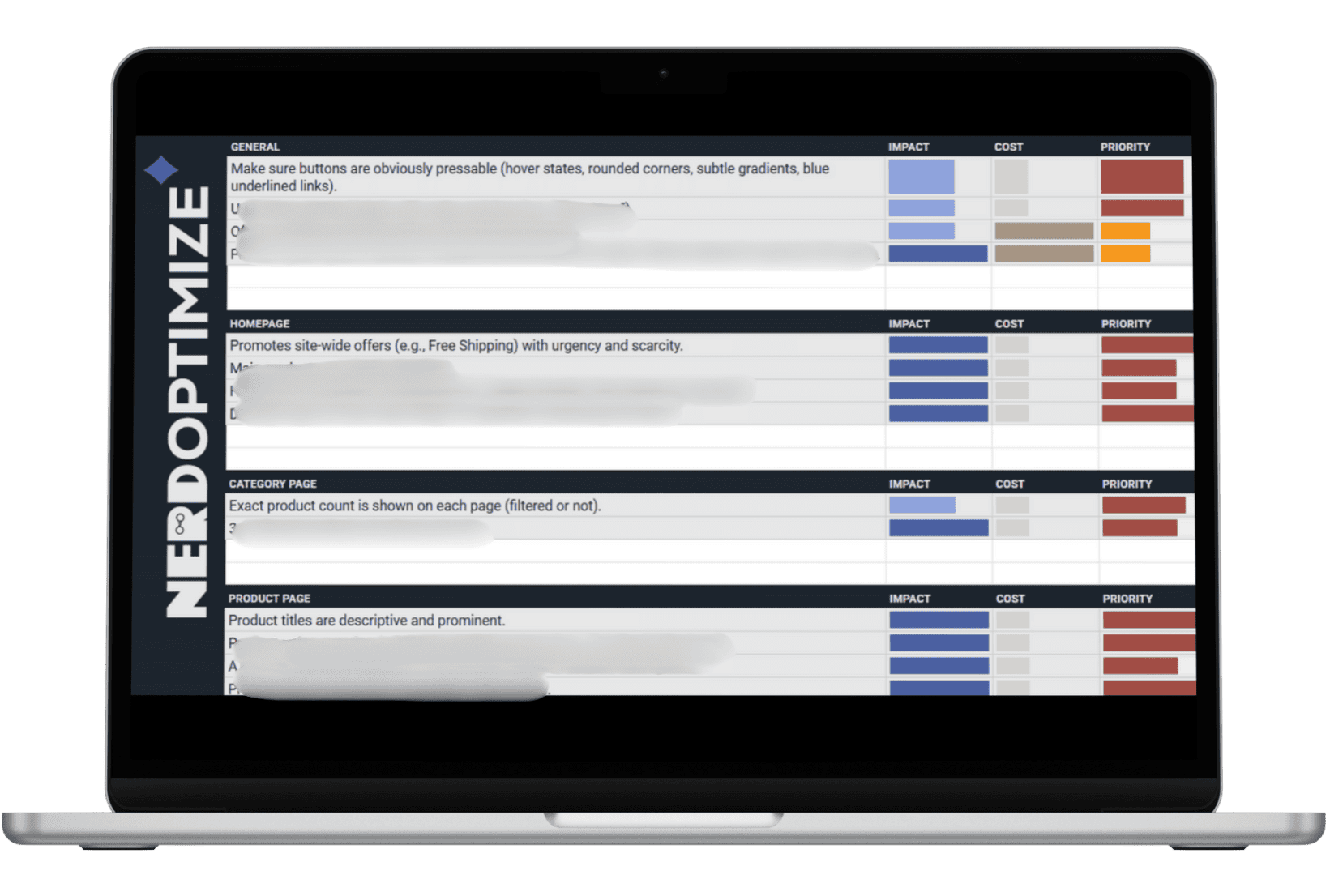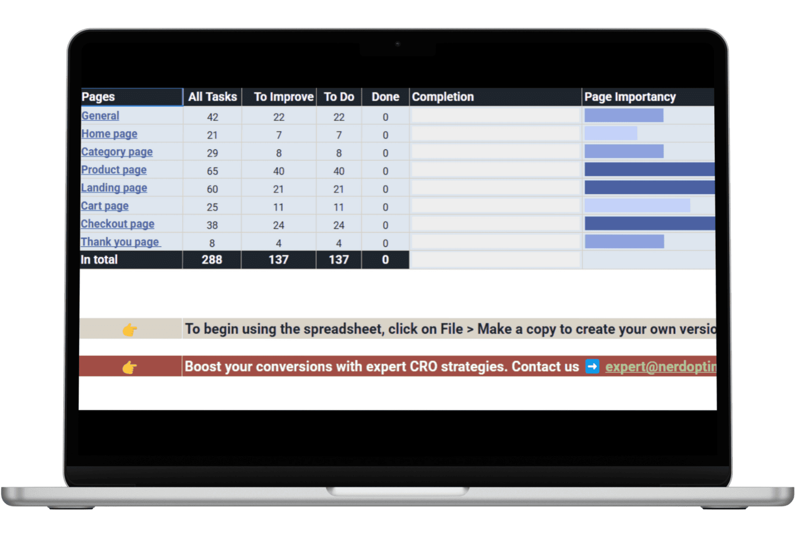 คำแนะนำในการทำ CRO ของเรามาในรูปแบบ Checklist เพื่อให้คุณติดตามความคืบหน้าได้ง่าย ทั้งยังมีบอกความสำคัญ ควรทำอะไรก่อนหลัง อันไหนมีผลมากกว่า และยังบอกความถูก-แพงในการทำแต่ละองค์ประกอบด้วย นอกจากนี้ เรายังมี Checklist ถึง 2 เวอร์ชั่น สำหรับเว็บไซต์ E-Commerce และ Service เนื่องจากเว็บไซต์ทั้งสองแบบมีองค์ประกอบและการติดตาม Conversion ที่ต่างกันนั่นเอง