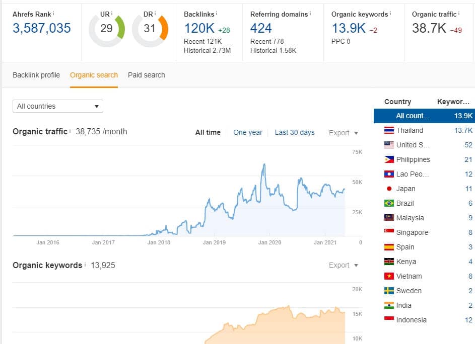 ลักษณะ PBN ที่ไม่มีคุณภาพ จะเน้นค่า สเตตัสสูง แต่จะไม่มีผู้เข้าชม หรือไม่มี Keywords ติดอยู่บน Search Engine
