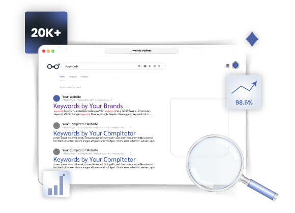 เราช่วยให้ธุรกิจของคุณเติบโตด้วยกลยุทธ์การทำ SEO ที่ออกแบบอย่างแม่นยำ เริ่มจากการวางแผนคีย์เวิร์ดที่มีคุณภาพเพื่อให้เว็บไซต์ติดอันดับสูงบน Google และดึง Organic Traffic เพิ่มขึ้นมากกว่า 200% สำหรับธุรกิจในหลากหลายอุตสาหกรรม